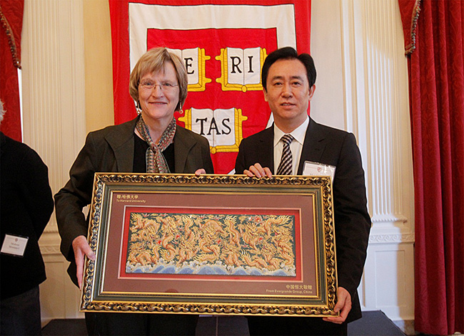 哈佛校长福斯特向董事局主席许家印赠送礼物